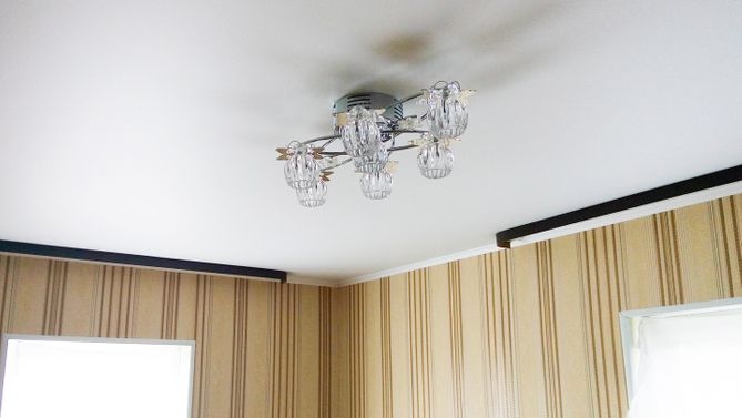 Монтаж потолка в гостиной 17 м2, полотно VISP M9001 (3.80)