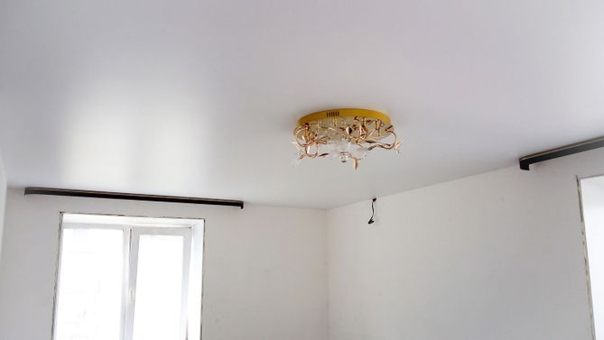 Монтаж потолка в гостиной 16 м2, полотно VISP L9001 (4.90)