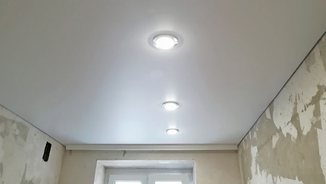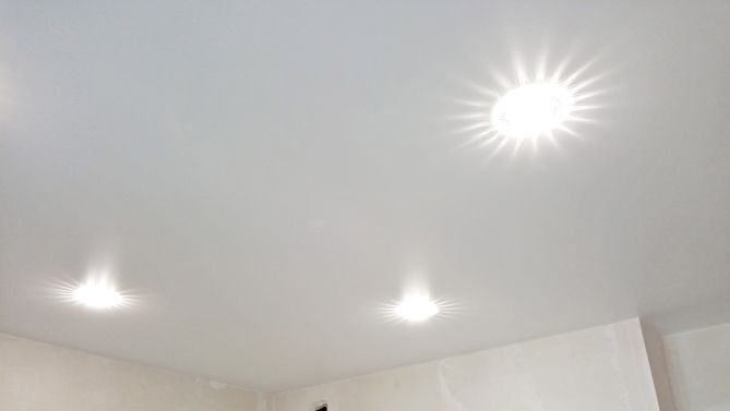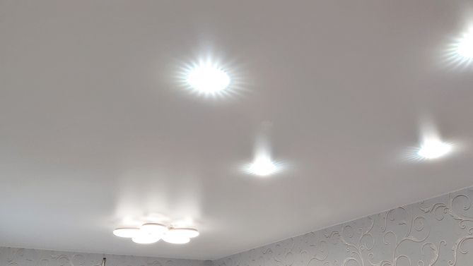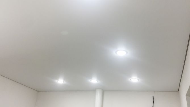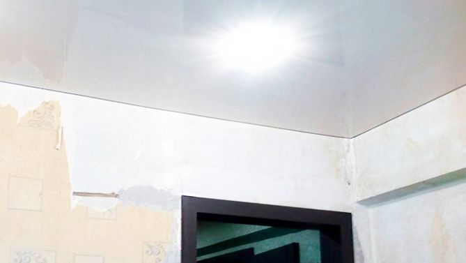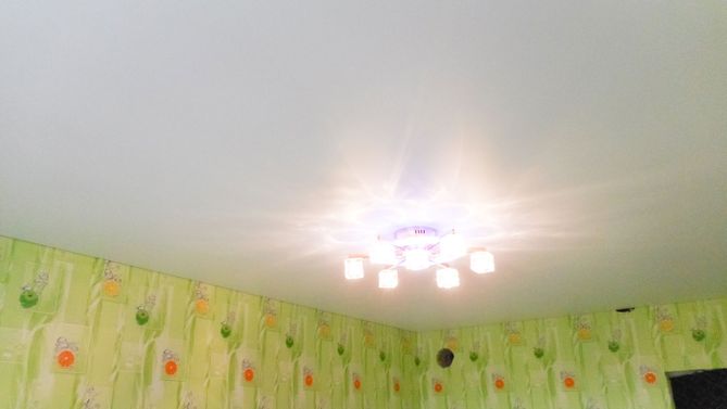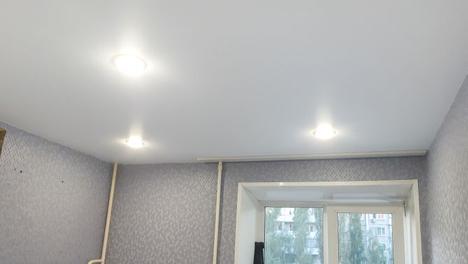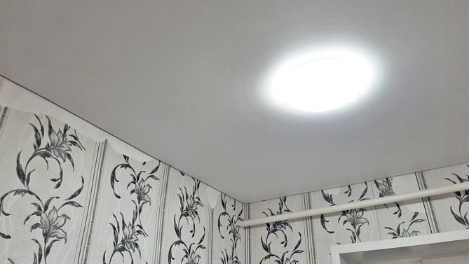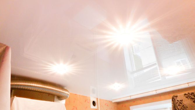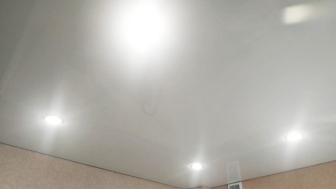 Бесшовный глянцевый натяжной потолок на кухню 6,2 м2