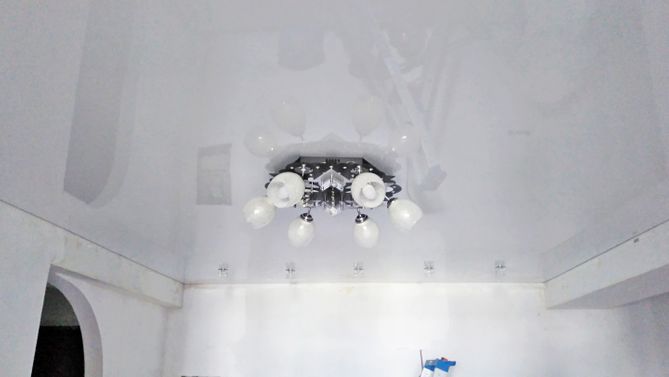 Бесшовный глянцевый натяжной потолок на кухню 7,1 м2
