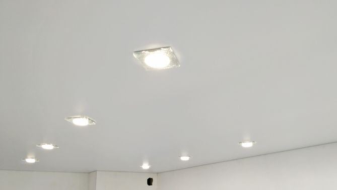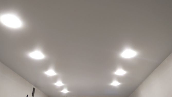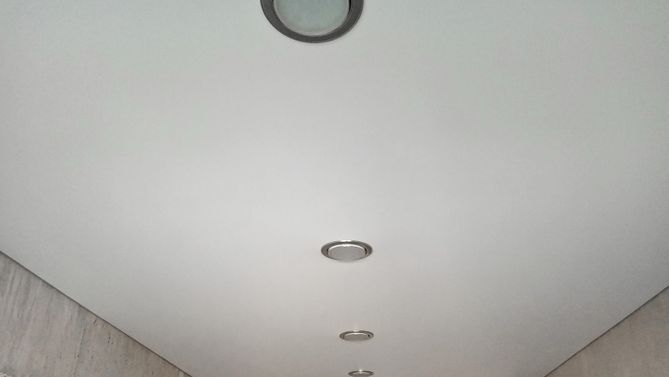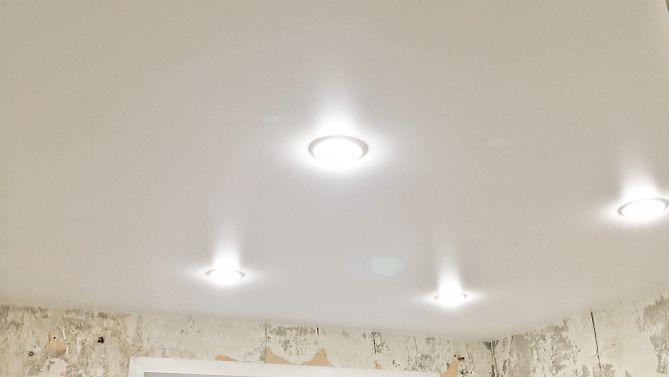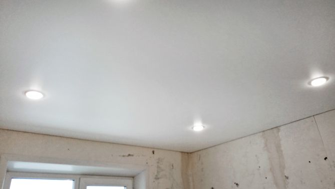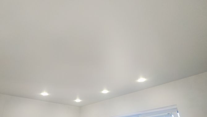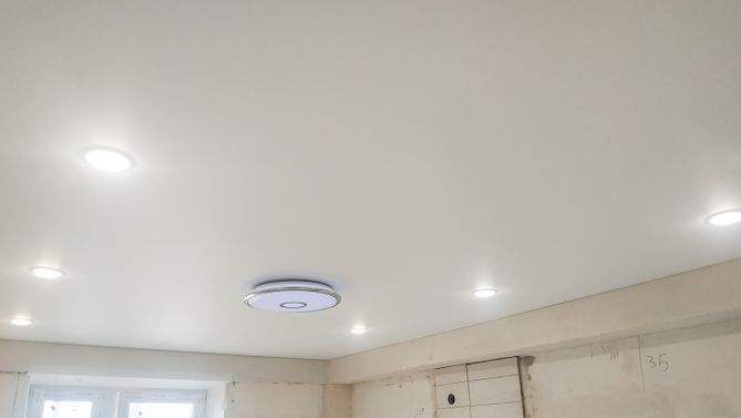Бесшовный сатиновый натяжной потолок на кухню 9,5 м2