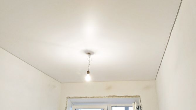 Бесшовный матовый натяжной потолок на кухню 9 м2