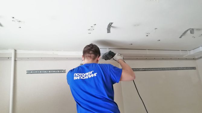 Монтаж потолка на кухне 8 м2, полотно VISP E9001 (3.35)