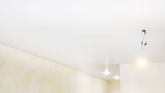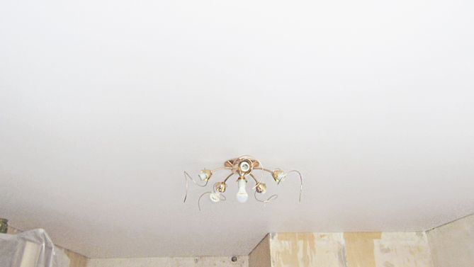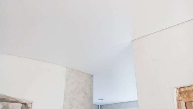 Монтаж потолка в гостиной 17 м2, полотно VISP M9001 (4.00)