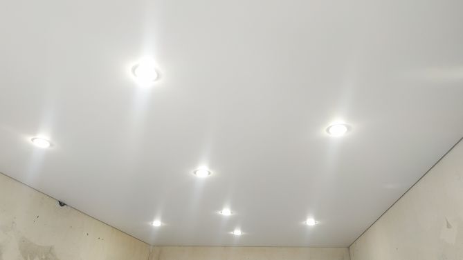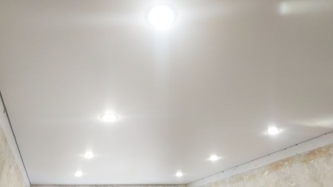 Бесшовный глянцевый натяжной потолок для зала 24,7 м2