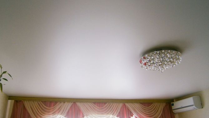 Бесшовный матовый натяжной потолок в гостиную 20,5 м2