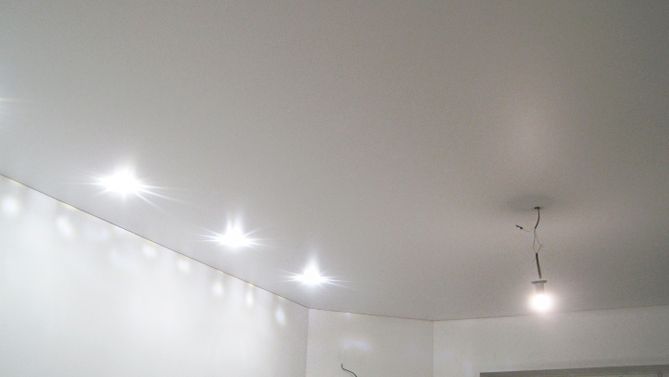 Монтаж потолка в гостиной 17 м2, полотно VISP M9001 (3.25)