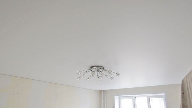 Бесшовный матовый натяжной потолок в гостиную 11,4 м2