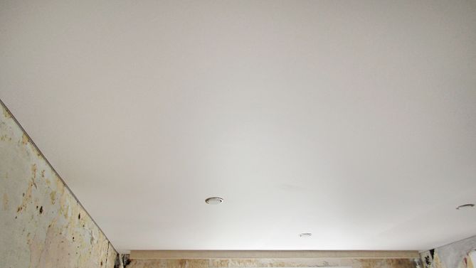 Монтаж потолка в гостиной 26 м2, полотно VISP M9001 (5.40)