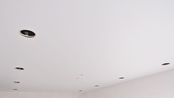 Монтаж потолка в гостиной 13 м2, полотно VISP M9001 (2.15)