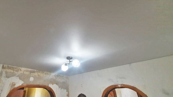 Монтаж потолка в спальне 17 м2, полотно VISP M9001 (3.80)
