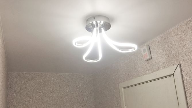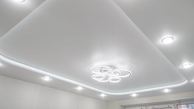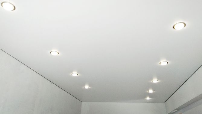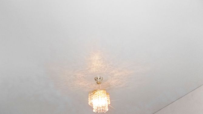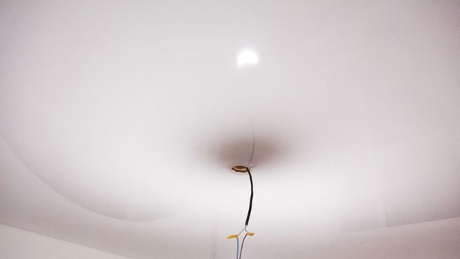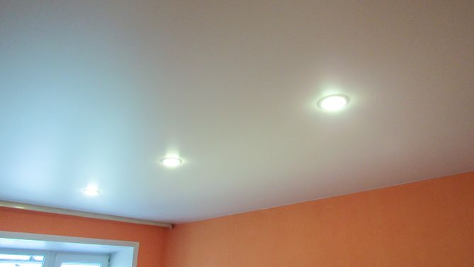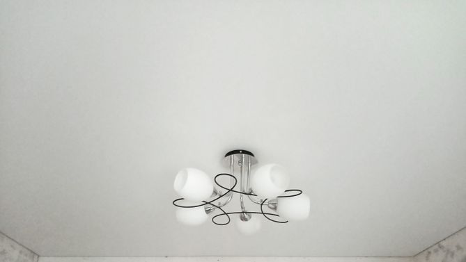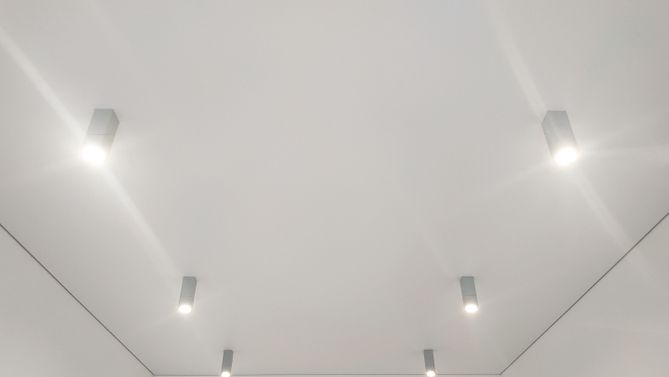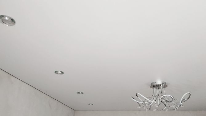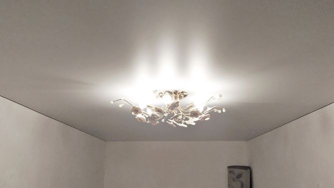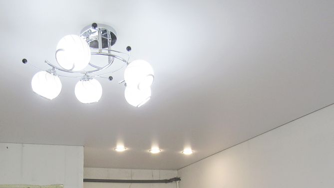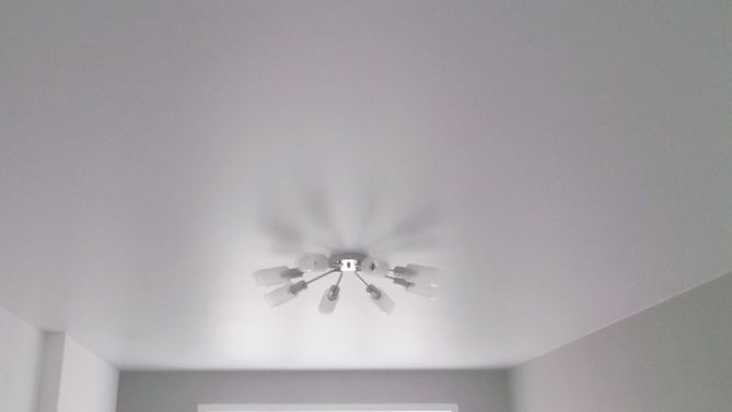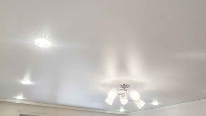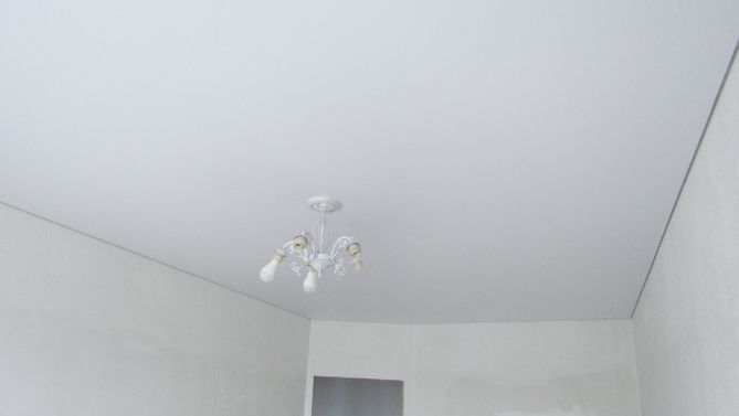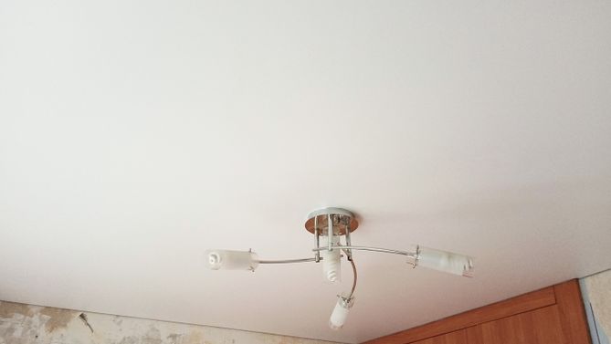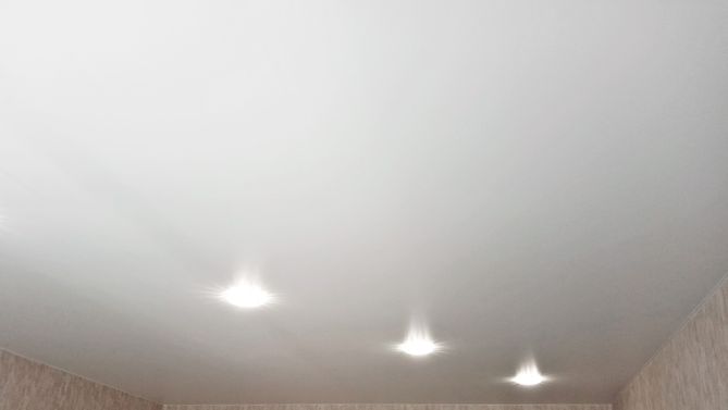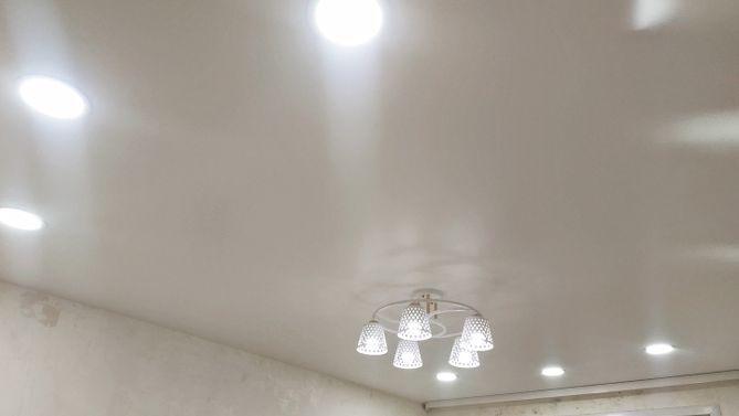 Бесшовный сатиновый натяжной потолок на кухню 9,5 м2