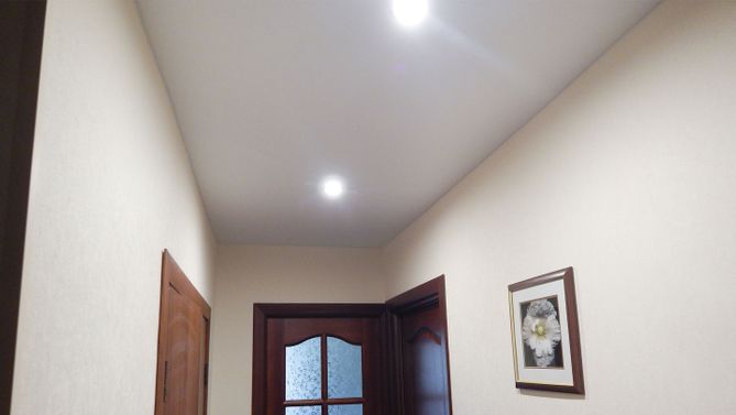 Бесшовный матовый натяжной потолок в коридор 8,8 м2