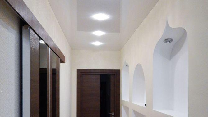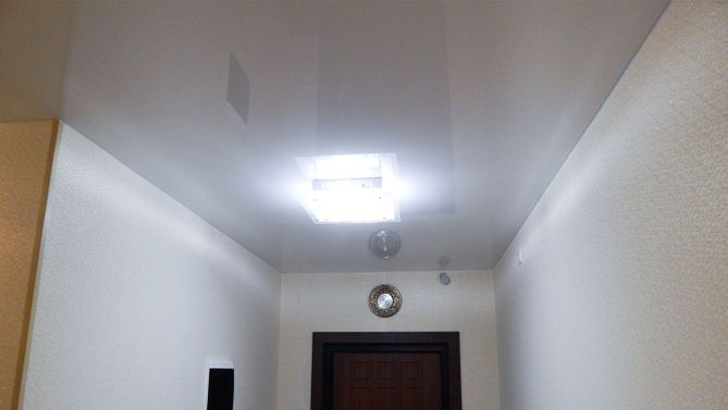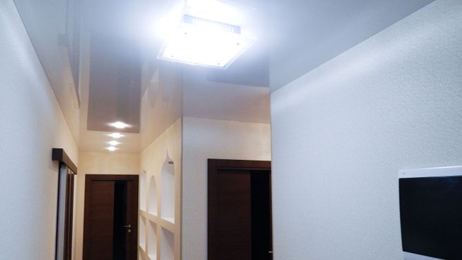 Бесшовный глянцевый натяжной потолок в коридор 16,3 м2