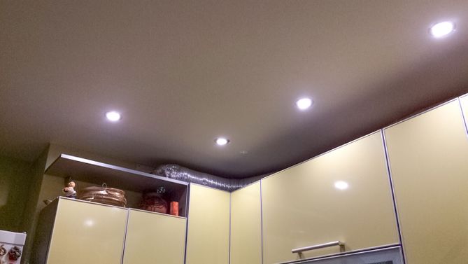 Бесшовный матовый натяжной потолок на кухню 5,4 м2