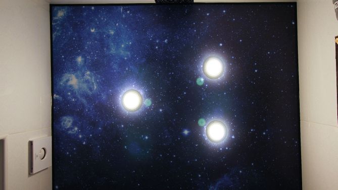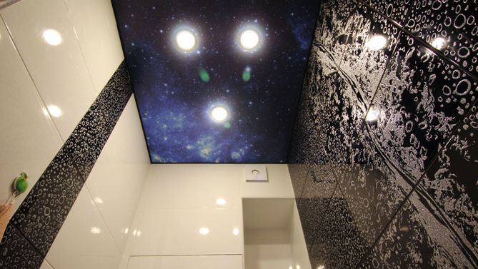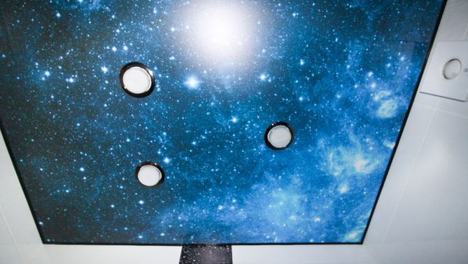 Матовый натяжной потолок 2 м2 в ванной с фотопечатью