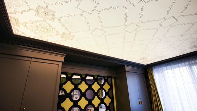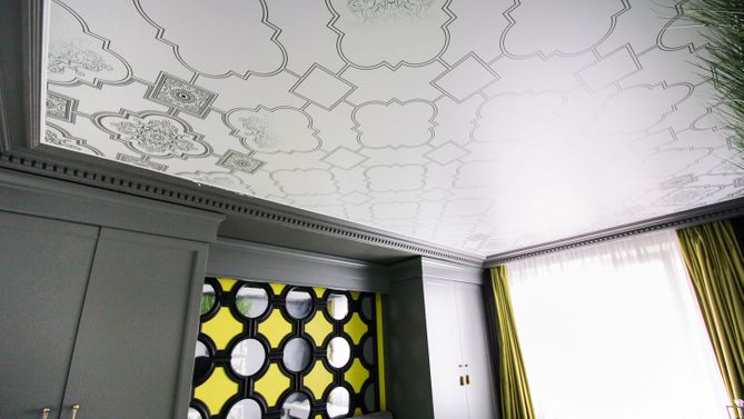 Компания Випсилинг установила нам натяжной потолок с фотопечатью, на нем изображен эскиз потолка в Лувре, также у нас есть световая подсветка и основной свет. Потолок очень красивый, удобный, нам очень нравится, все наши друзья нам завидуют! Спасибо большое компании Випсилинг!