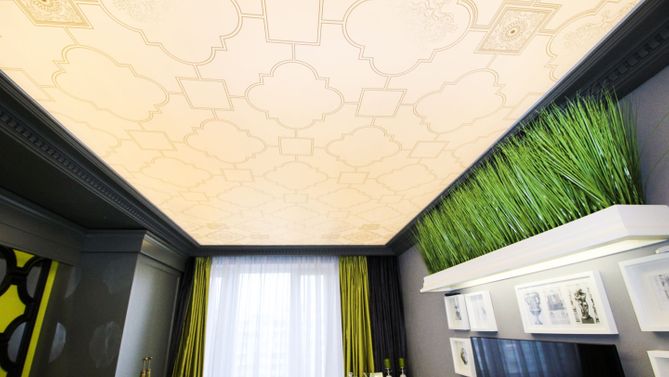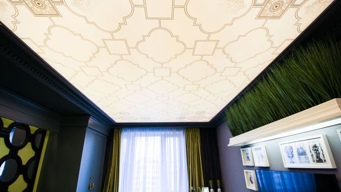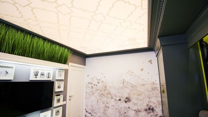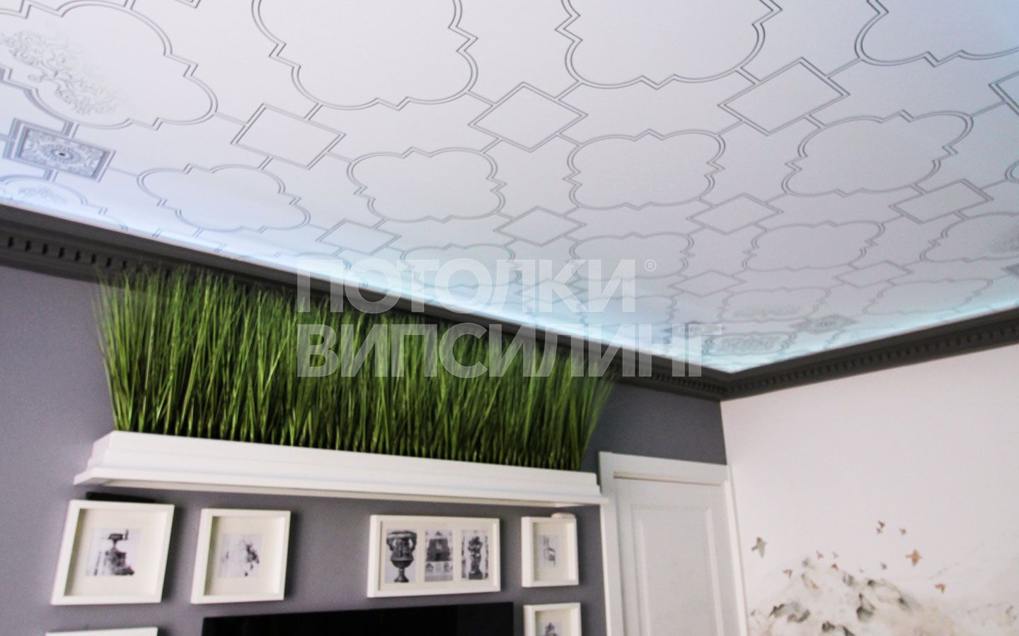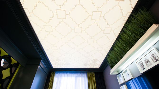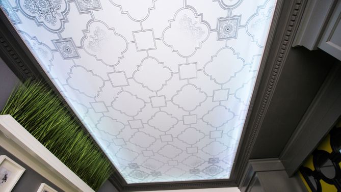 Полупрозрачный натяжной потолок с фотопечатью 7,7 м2