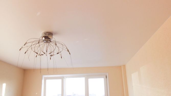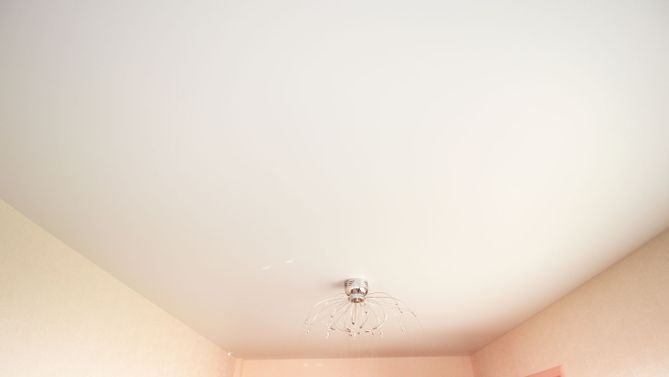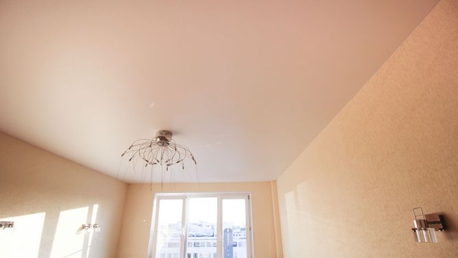 Бесшовный матовый натяжной потолок для зала 18,2 м2