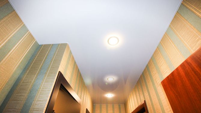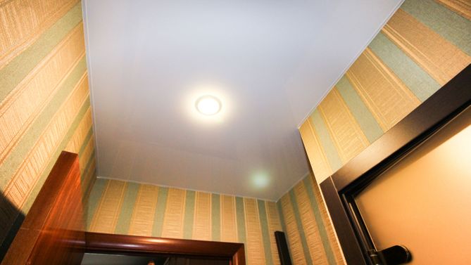 Бесшовный глянцевый натяжной потолок в коридор 3,2 м2