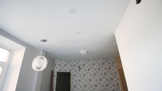 Бесшовный матовый натяжной потолок в квартиру 20,2 м2