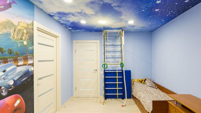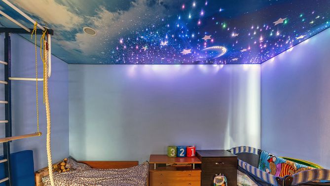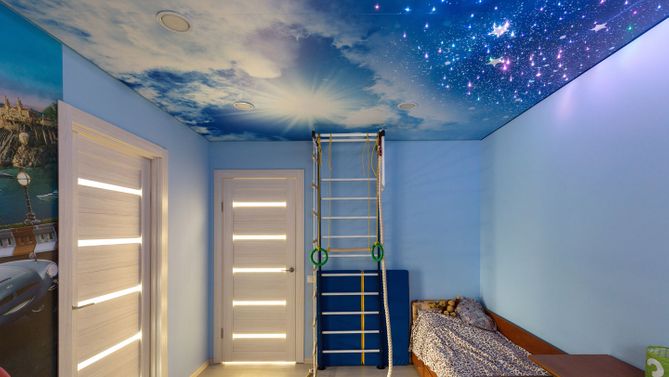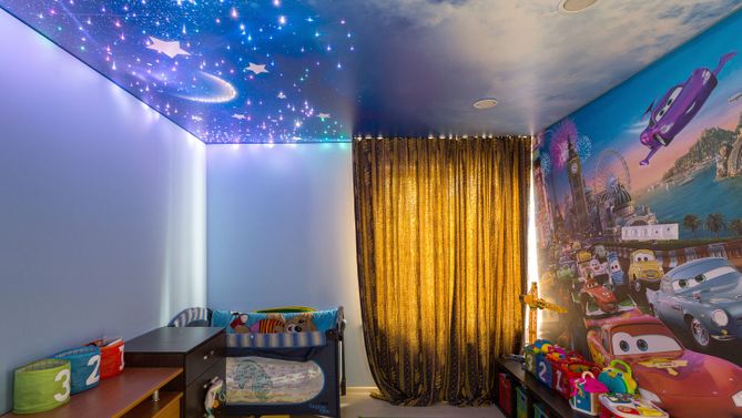 Натяжной потолок звёздное небо в детской 12,7 м2