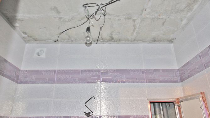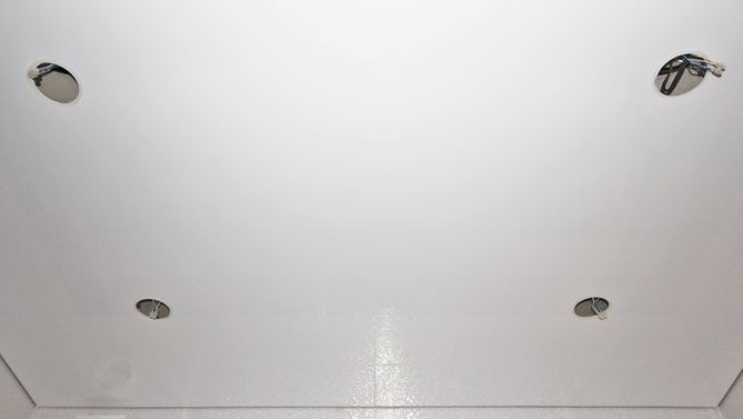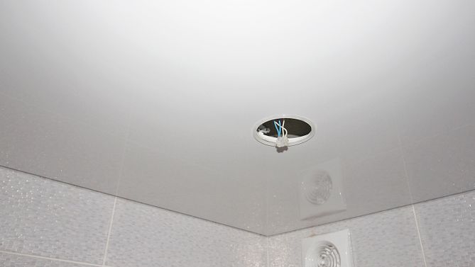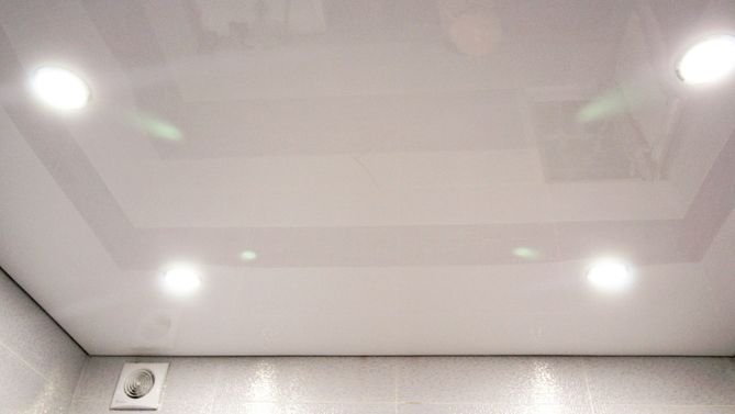 Бесшовный глянцевый натяжной потолок в ванную комнату 3,9 м2