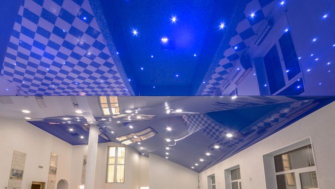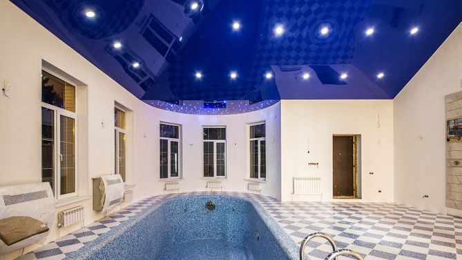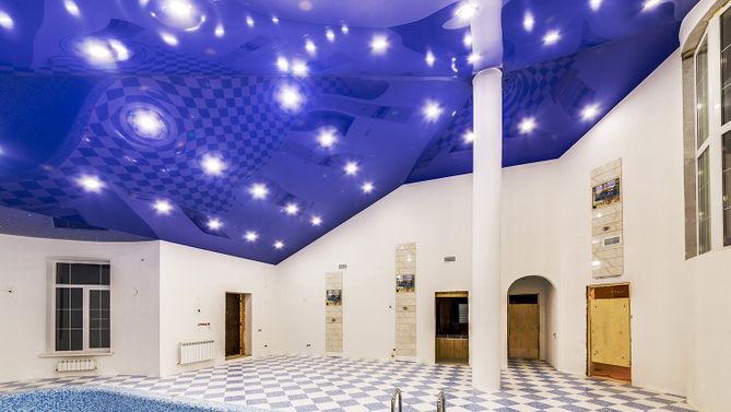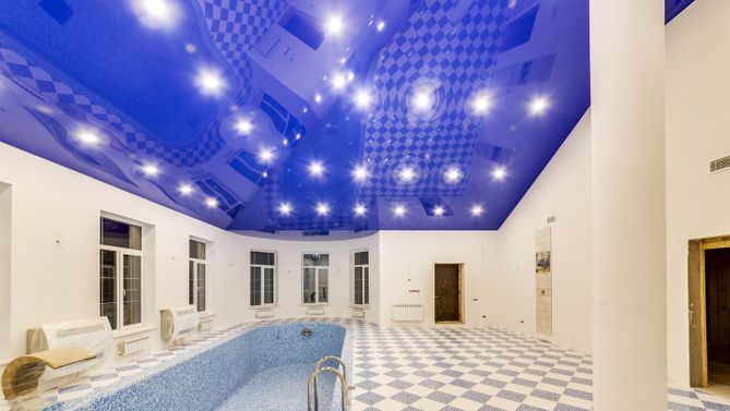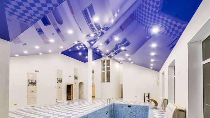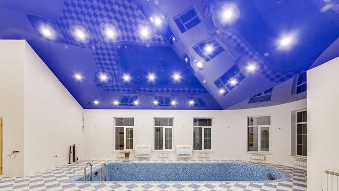 Трехмерный глянцевый натяжной потолок в бассейне 113,4 м2