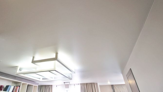 Бесшовный матовый натяжной потолок в квартиру 43,2 м2