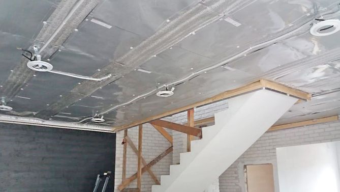 Матовый натяжной потолок в деревянном доме 32,5 м2