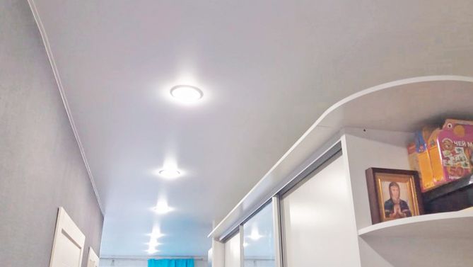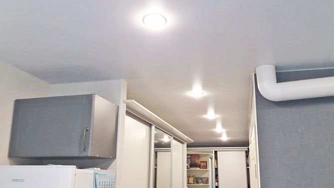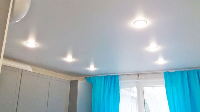 Бесшовный сатиновый натяжной потолок в квартиру 28,2 м2