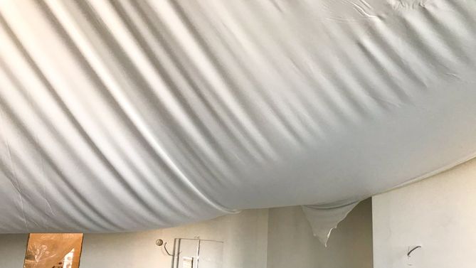 Бесшовный матовый натяжной потолок в гостиную 24,6 м2