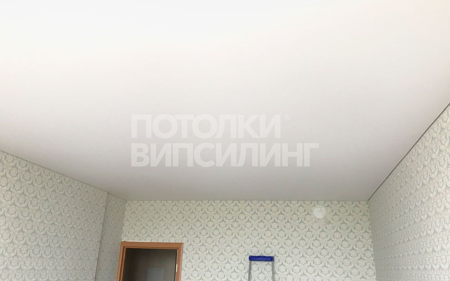 Монтаж потолка в гостиной 23 м2, полотно VISP M9001 (3.50)