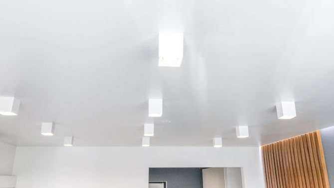 Монтаж потолка в гостиной 17 м2, полотно VISP S9020 (4.00)