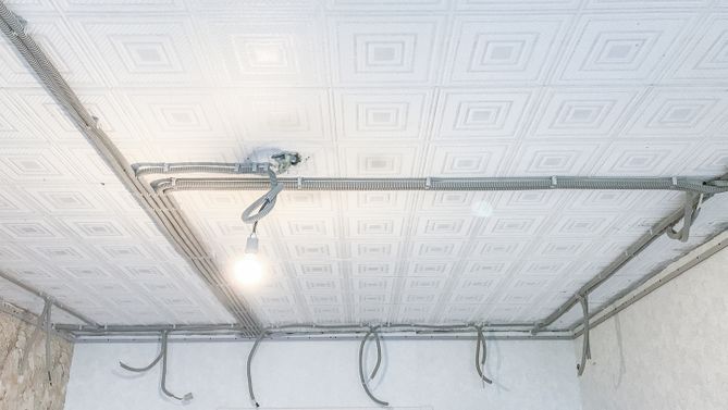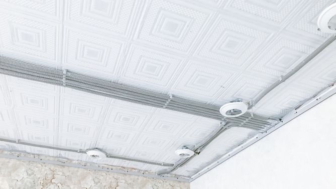 Монтаж потолка для зала 17 м2, полотно VISP M9001 (3.50)