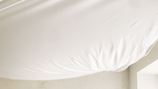Монтаж потолка в гостиной 17 м2, полотно VISP S9020 (3.25)