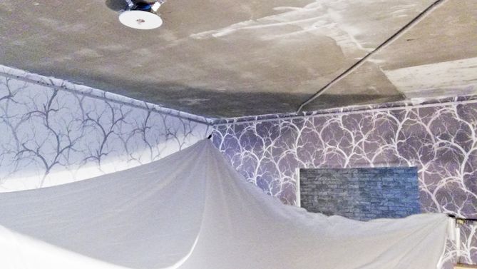 Монтаж потолка в гостиной 14 м2, полотно VISP M9001 (3.25)