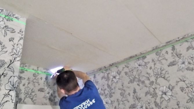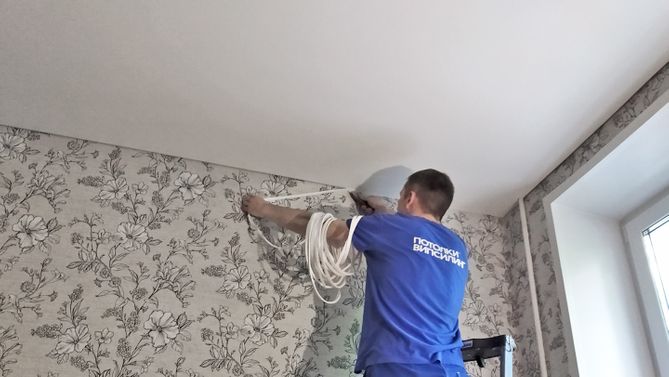 Монтаж потолка в спальне 10 м2, полотно VISP M9001 (2.60)