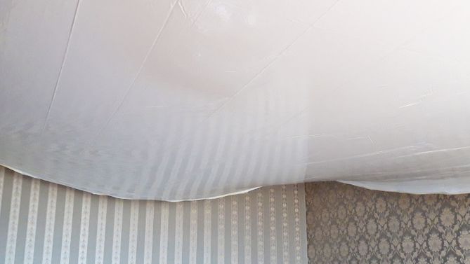 Монтаж потолка в гостиной 19 м2, полотно VISP L9001 (3.50)
