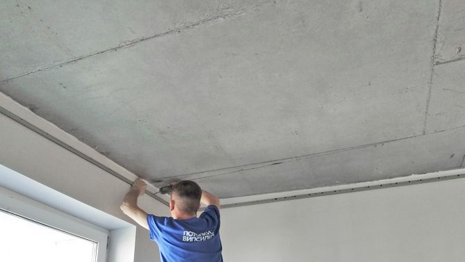 Монтаж потолка в гостиной 20 м2, полотно VISP M9001 (3.80)