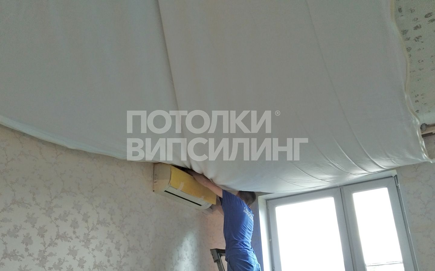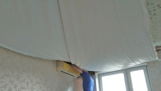 Монтаж потолка в спальне 12 м2, полотно VISP M9001 (2.60)
