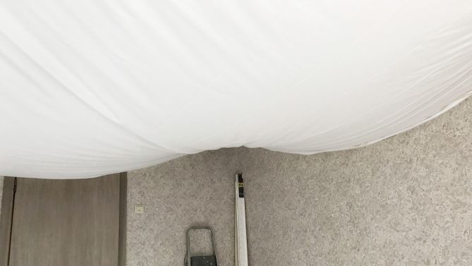 Монтаж потолка в гостиной 16 м2, полотно VISP M9001 (4.00)