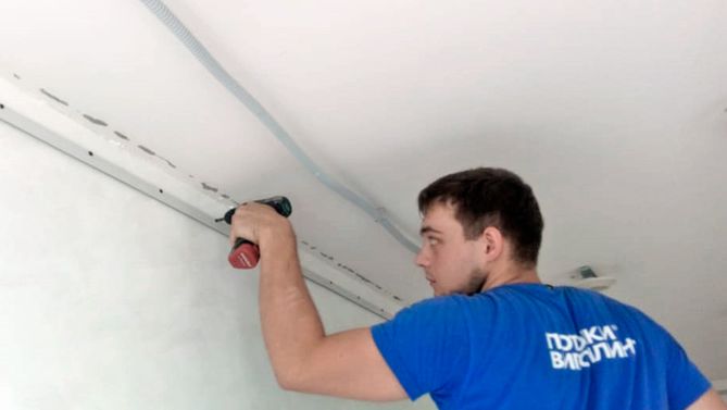 Монтаж потолка в гостиной 18 м2, полотно VISP M9001 (3.25)