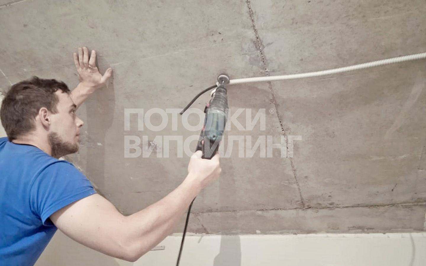 Монтаж потолка для зала 28 м2, полотно VISP M9001 (3.50)