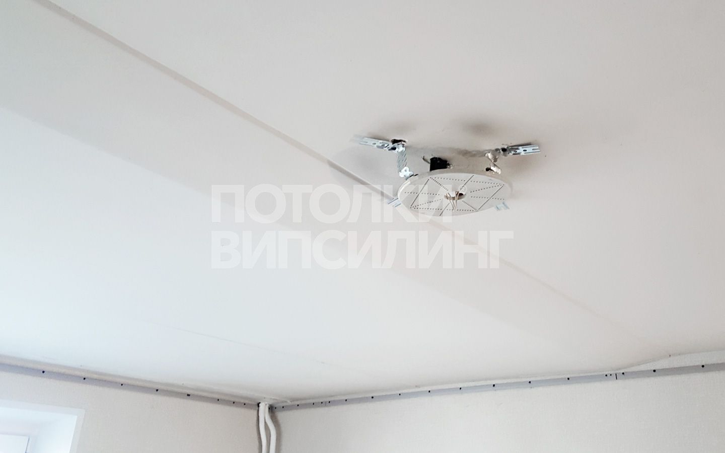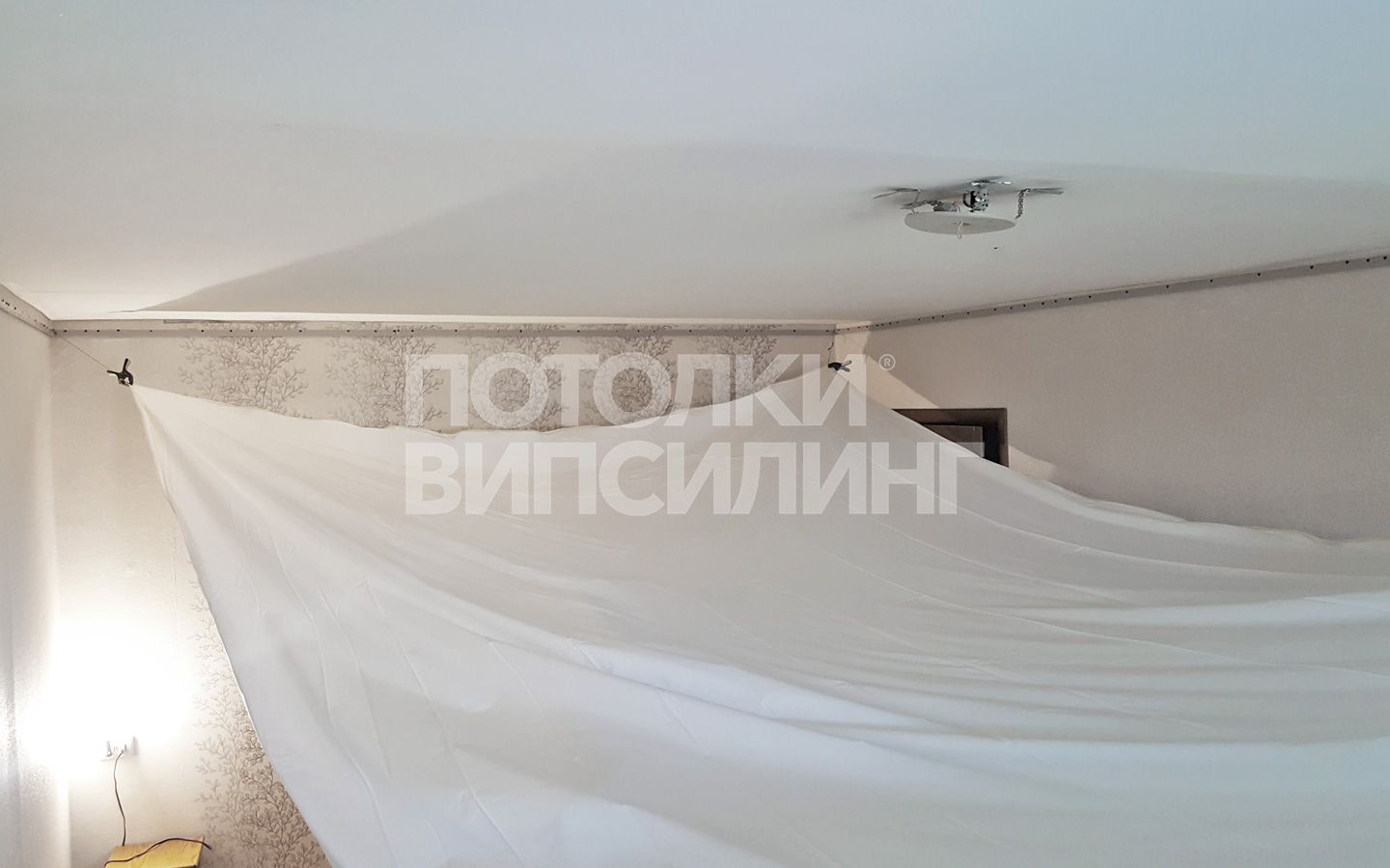Монтаж потолка в гостиной 19 м2, полотно VISP M9001 (4.00)