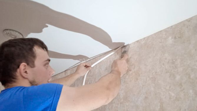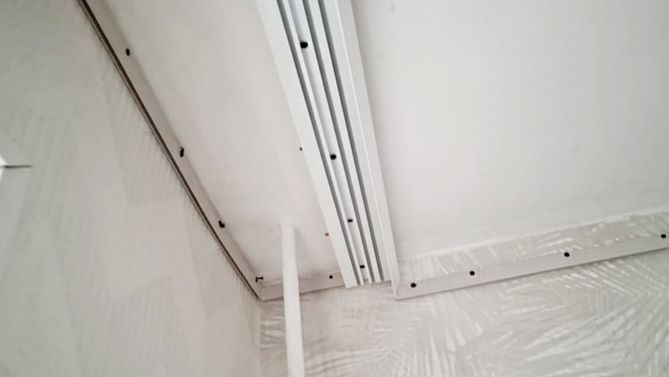 Монтаж потолка в гостиной 16 м2, полотно VISP S9020 (3.50)