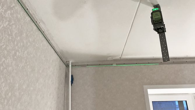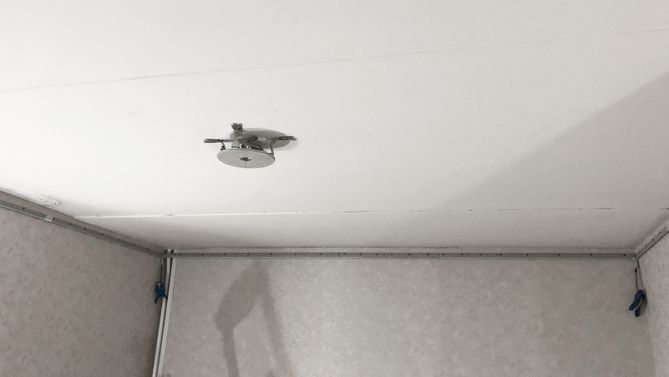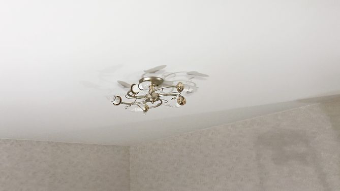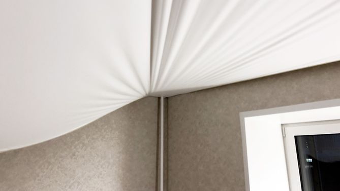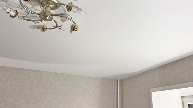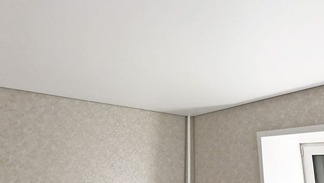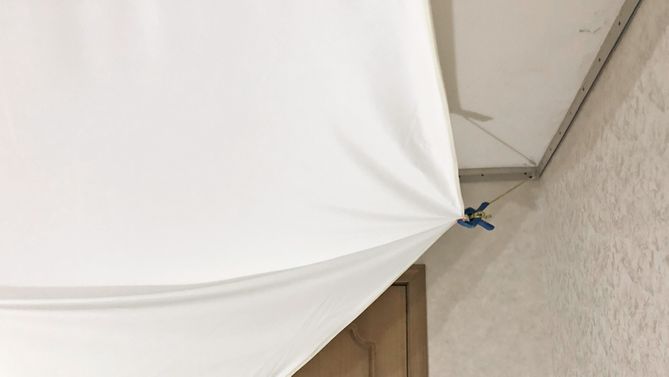 Монтаж потолка в гостиной 14 м2, полотно VISP M9001 (3.80)