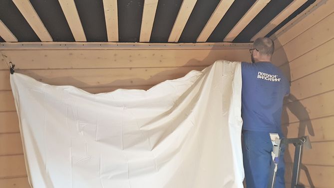 Монтаж потолка в спальне 13 м2, полотно VISP M9001 (3.25)