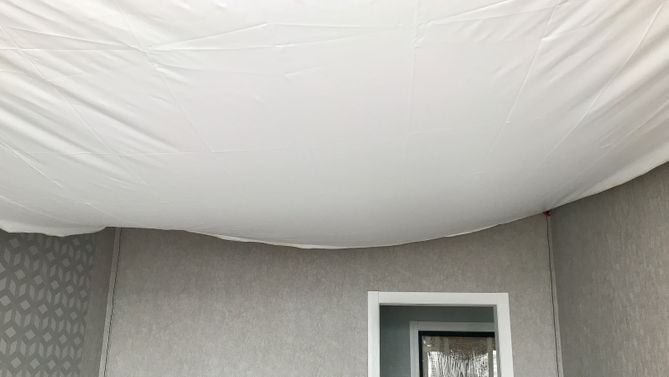 Монтаж потолка в спальне 14 м2, полотно VISP M9001 (3.50)