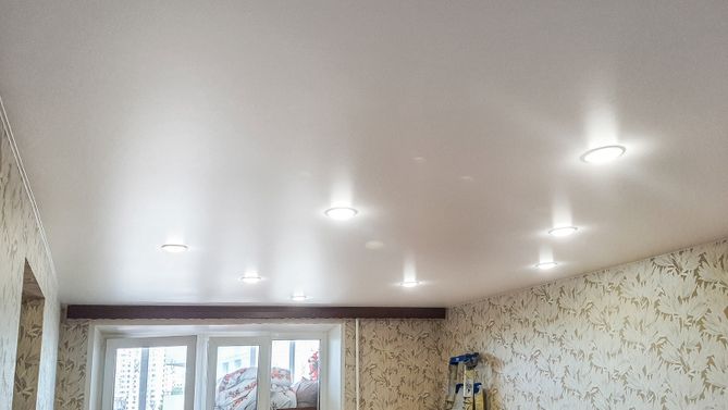 Монтаж потолка в гостиной 18 м2, полотно VISP M9001 (3.25)